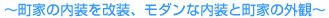 京都市内にある町家は、存続・保存の機運で盛り上がっています。確かに京都の町並みには京町家の外観はよく似合います。しかし、家屋内はもっと住みやすくしたいと思うのが人情。そうしたニーズに応えて、室内のリフォームを請け負ったのが、この住宅。外は町家、中はモダンというミスマッチとも思える雰囲気が、またまた京都の町並みによく似合っています。